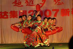 精彩的文藝匯演于下午2:30在金色大廳準時開始。一陣熱鬧的大鼓后,一群可愛的孩子快樂登場給大家拜大年。集團公司董事長、總裁楊勇發表了熱情洋溢的新年賀辭,并宣布文藝匯演正式開始。在16個文藝節目表演過程中,各個公司都拿出了看家本領,表演了自編自演、精心排練的舞蹈、小品、獨唱、諧劇、時裝秀等文藝節目。現場內,全體觀眾認真觀賞一個個精彩的節目,興奮地參加游戲,臉上充滿了笑容,一片快樂祥和!