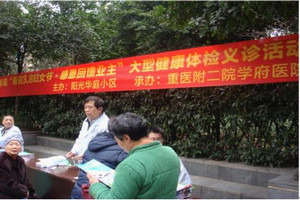 為了與廣大業主共同迎接一年一度婦女節的到來, 3月3日,在“陽光華庭”小區三期籃球場開展主題為“喜迎三八婦女節感恩回饋免費體檢議診”活動。本次體檢活動與重醫附二院學府醫院聯合舉辦,體檢內容包括了血壓測量、婦科常規檢查、肝膽脾檢查及病癥咨詢等。